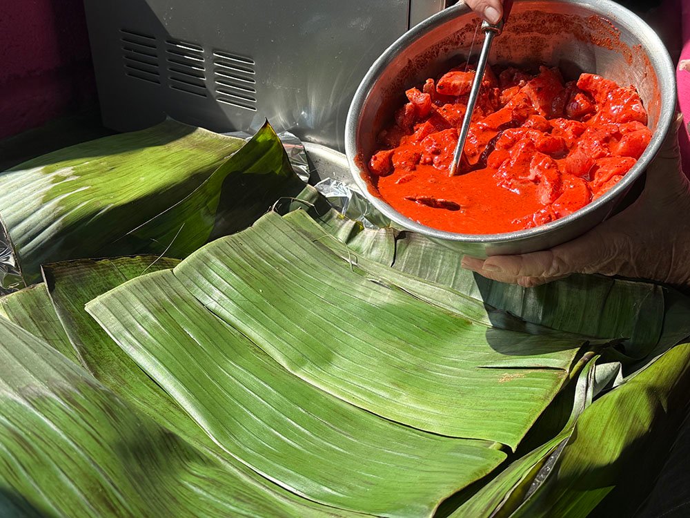 • Chicken wrapped in hoja santa leaves