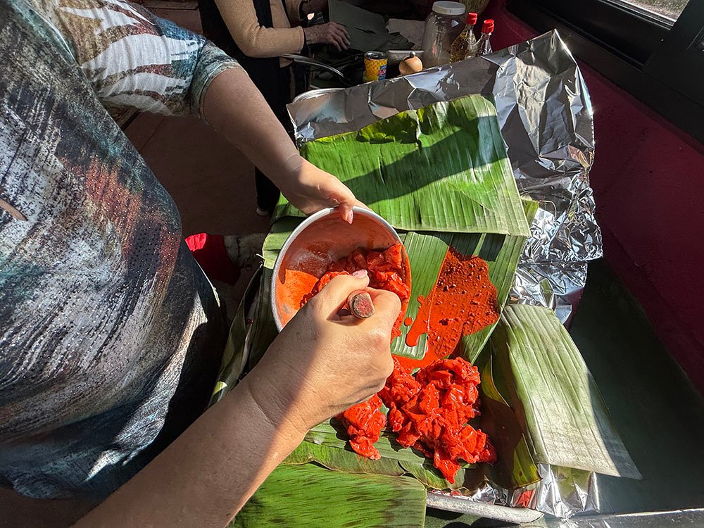 • Cochinita pibil..pork cooked slowly in the oven wrapped in fresh banana leaves